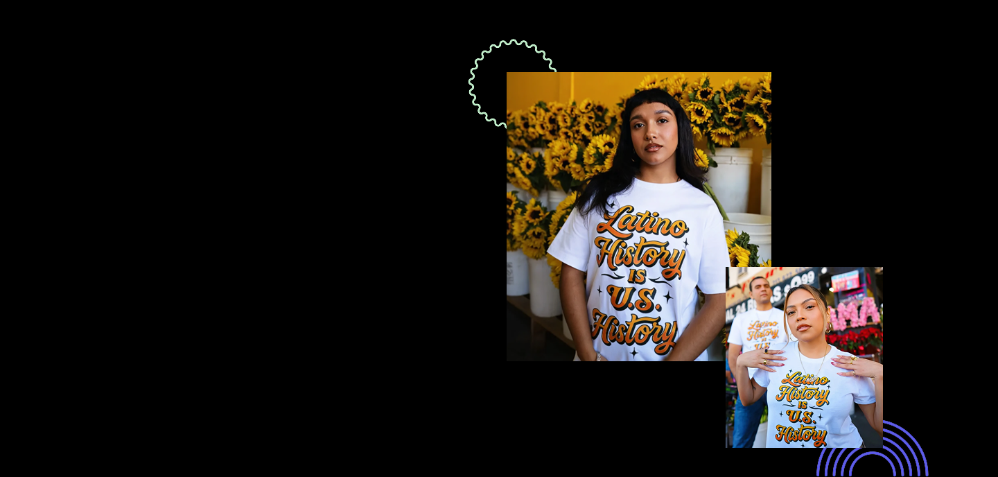 Together, we've designed an exclusive tee that celebrates and amplifies the Latino experience in the United States, our pride, and our deniable impact. This t-shirt honors every generation that has built, created, and dreamed.